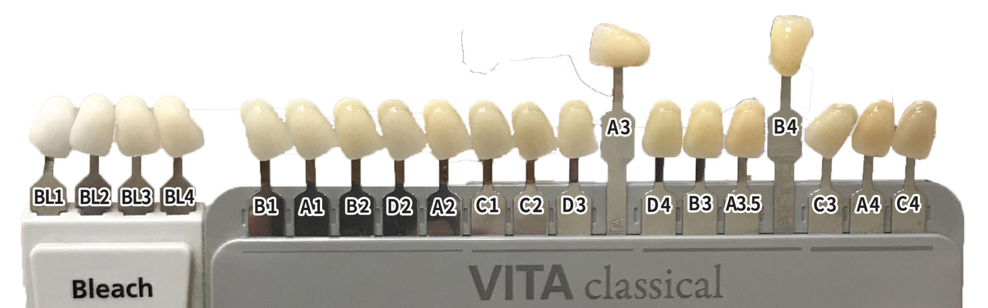 日本人の平均的な歯の色はこのシェードガイトでA3〜A3.5
